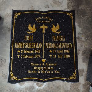 Batu Nisan Kristen Lempengan bahan Granit black gold import india
